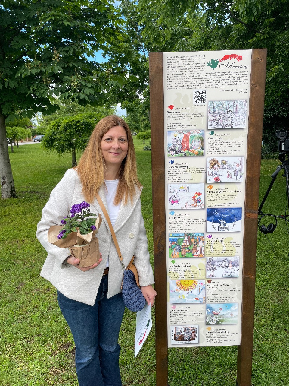 A Dunaharaszti közösség összefogásaként született meg gyermeknapra a Mesesétány. A padokon lévő QR-kód segítségével lehet csatlakozni a Mesesétány honlapjára, ahol öt klasszikus, öt vadonatúj mese hallgatható meg. Az újak közül egyet én írtam: Csuporka színre lép, 3. állomás.